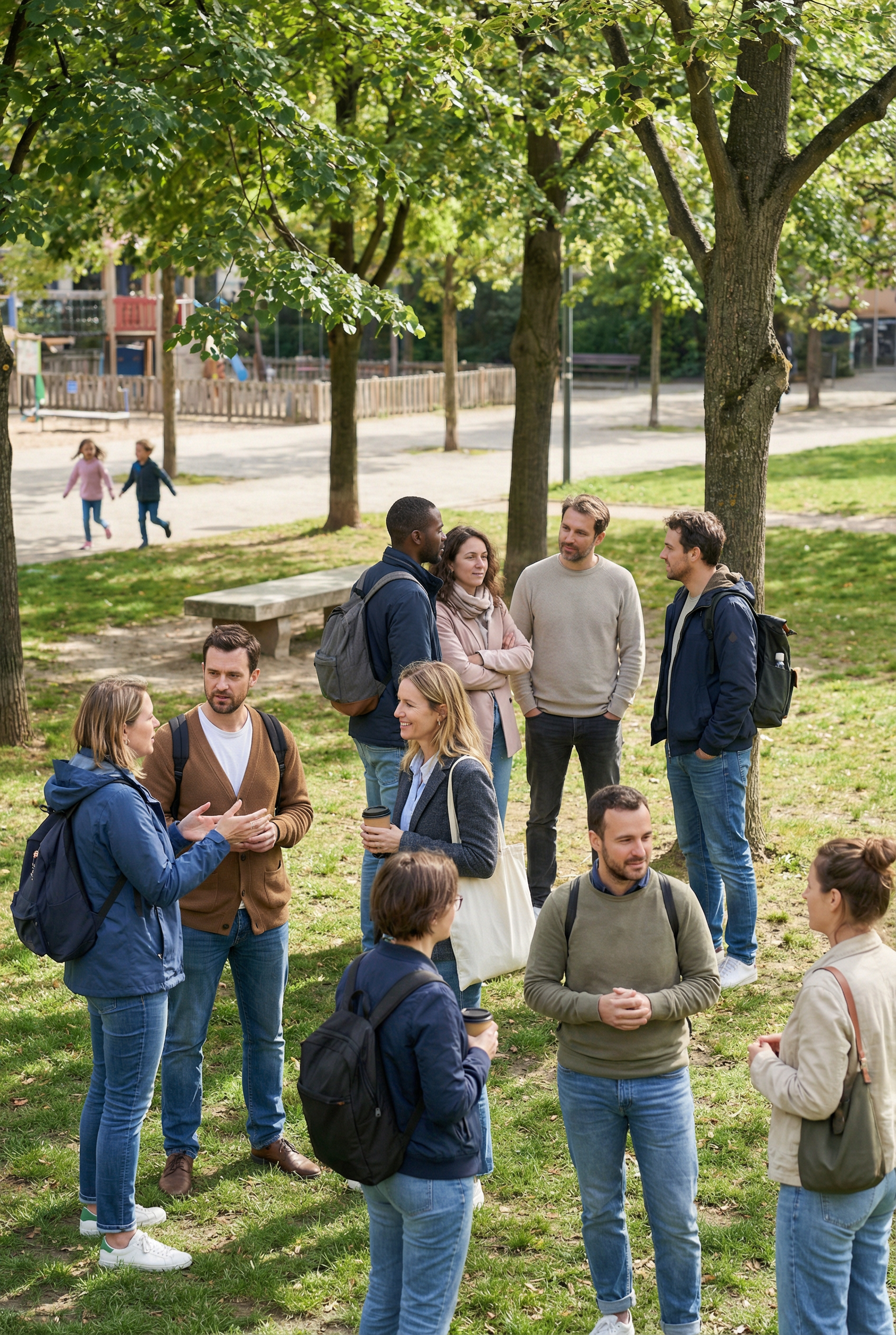 Tras las intervenciones, el encuentro continúa de forma informal, favoreciendo la conversación en el propio parque.